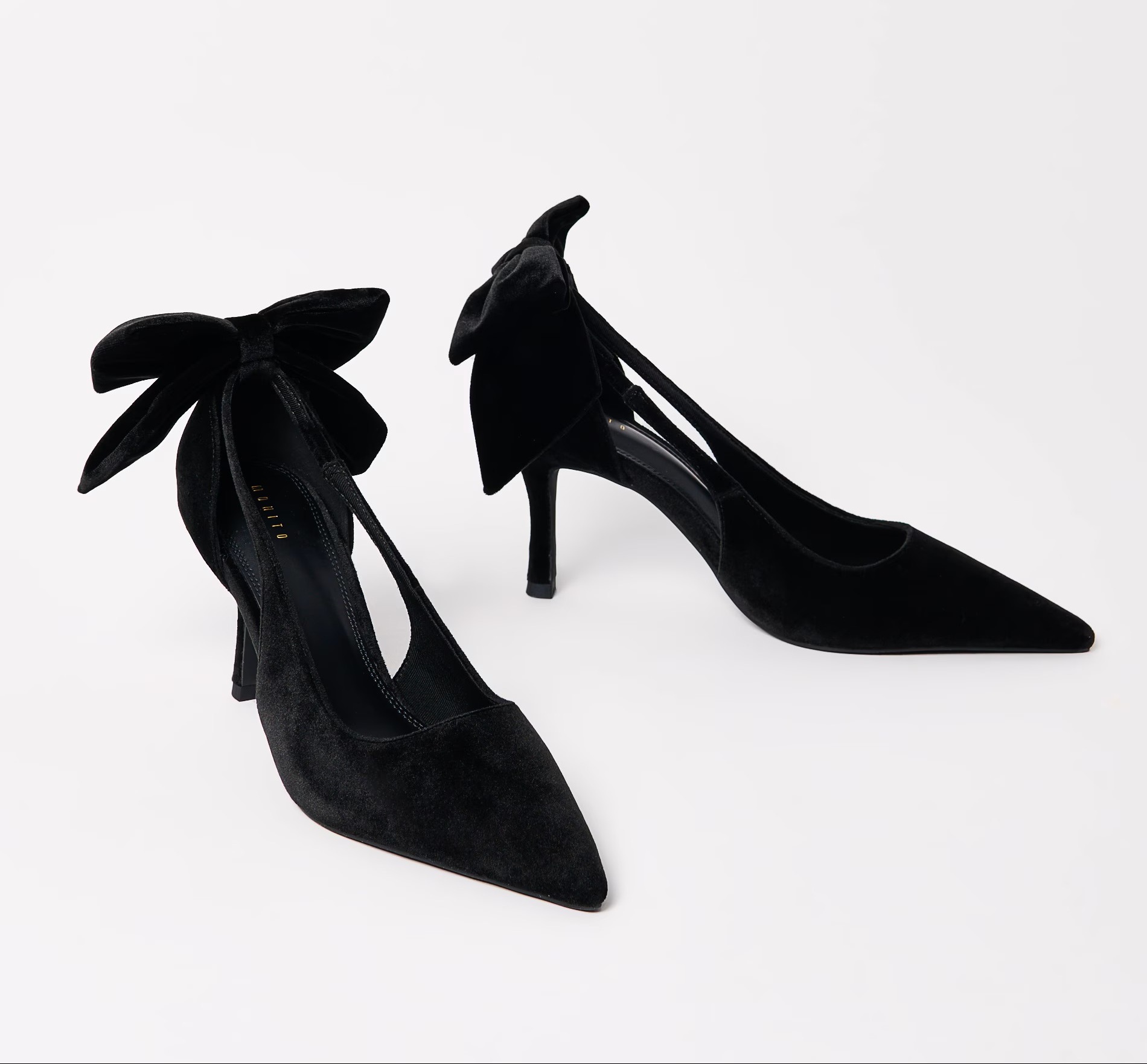 Подарък за жени, които обичат елегантни и женствени модели. Фината панделка добавя празничен акцент, правейки обувките идеални за зимни партита.