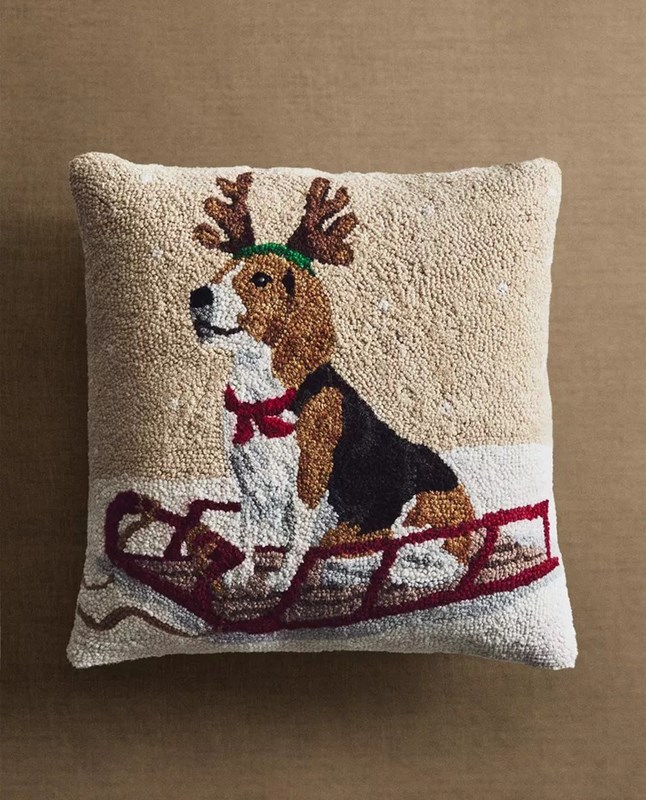 Коледна вълнена калъфка с кучешки впряг ZARA