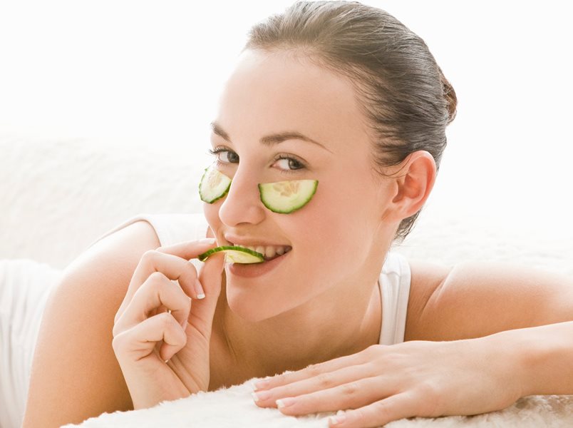 Един от най-широко познатите методи за грижа за кожата около очите е слагане на резенчета краставица върху деликатната зона. Всъщност, това е може би един от най-древните познати способи за хидратация и освежаване, познати на хората. Повечето от нас са наясно, че околоочният контур изисква специален подход в ежедневната грижа, тъй като кожата там е особено тънка, има ограничено количество себумни жлези и съответно е склонна към образуване на фини линии, подуване и понякога – тъмни кръгове. Истина ли е обаче, че едно резенче краставица би ни помогнало в решението на тези проблеми? Отговорът не е еднозначен – всезвестен е фактът, че този любим зеленчук практически представлява почти 80% вода, освен това може да се похвали и със сериозно съдържание на витамин С и фолиева киселина.