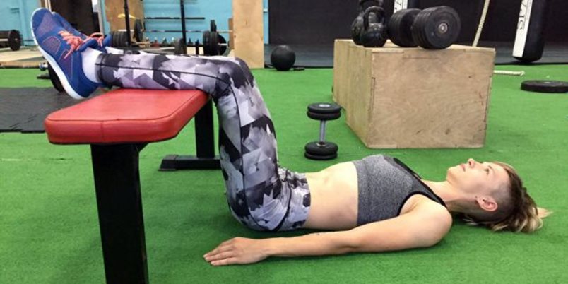 Легнете на пода по гръб, сгънете коленете си и сложете краката си на леглото или на дивана. Трябва да изберете стол, диван или друга мебел, която да е подходяща по височина. Когато поставите краката си върху нея, ъгълът между коляното крак и бедрото трябва да бъде 90 градуса.