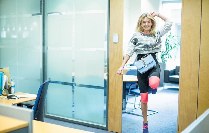 Намерете приемлив начин да се движите, без да напускате работното си пространство. Въртете се на стола. Въртете се пред огледалото. Раздвижвайте глезените и стъпаата под бюрото. Често ходете до автомата за вода или тоалетната. Какъв е смисълът? Колкото повече енергия изразходвате, толкова повече калории можете да консумирате.