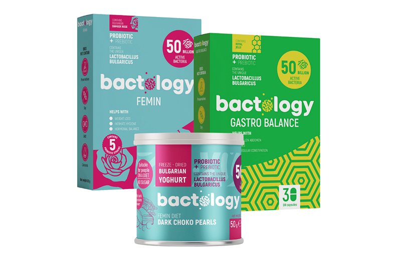 Пробиотиците и загубата на тегло са в тясна взаимовръзка, особено що се отнася до нежния пол. Bactlogy пакет „Отслабване" е разработен специално за жени, като взема предвид характерните особености на женския организъм. Този комплект включва три пробиотични продукта с доказана ефективност: Bactology Femin (с екстракт от българска роза Дамасцена за детоксикация), Bactology GastroBalance (за подут корем) и Bactology пробиотични перли с натурален шоколад (без захар).