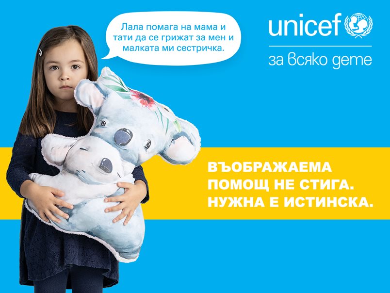 Това е посланието зад дарителската кампания на УНИЦЕФ в подкрепа на най-уязвимите деца. Тя стартира през месец декември, за да набере средства за три ключови области, в които УНИЦЕФ подкрепя децата в България: Ранно детско развитие, Приобщаващо образование и Осигуряване на безопасна учебна среда.