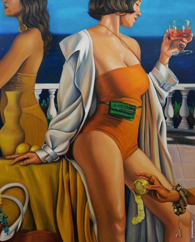 За Jacquemus тя изобразява сцена с момичета, които почиват на южния бряг на Франция. Според Жакмю, кампанията напомня картините, които могат да се видят във всяка вила на Ривиерата: летен тен, розово вино, тераса, синьо море и небе. При създаването на своите колекции дизайнерът се вдъхновява от изкуството отначалото на ХХ век, особено от творбите на Анри Матис и Пабло Пикасо.