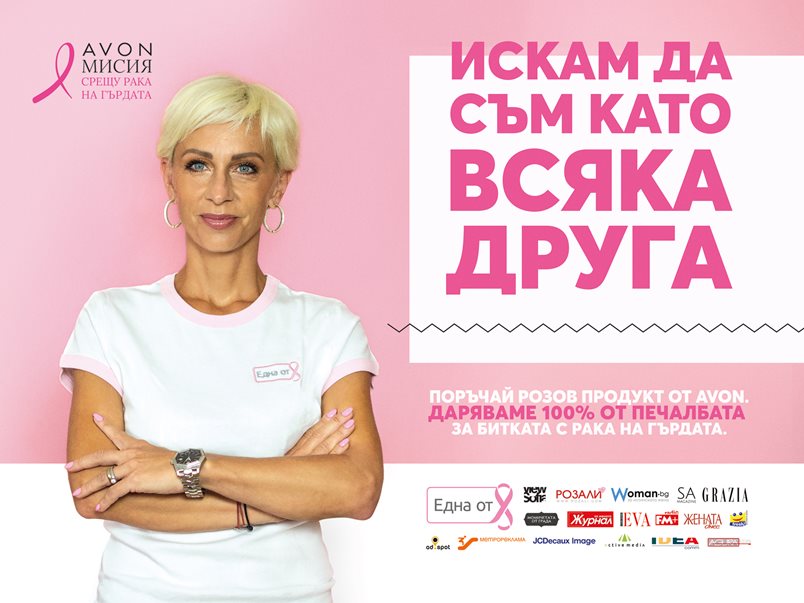 По-малко от месец след като Avon реализира дарение на стойност 100 000 лева за осигуряване на подкрепа на жените с рак на гърдата по програмата „Бъди до мен", компанията продължава да работи усилено за повишаване на информираността в обществото и подкрепа на диагностицираните жени. Статистиката в България категорично показва сериозността на проблема - над 50 000 българки са с поставена диагноза „рак на гърдата", а всяка година регистърът се допълва с близо 3800 нови случая.