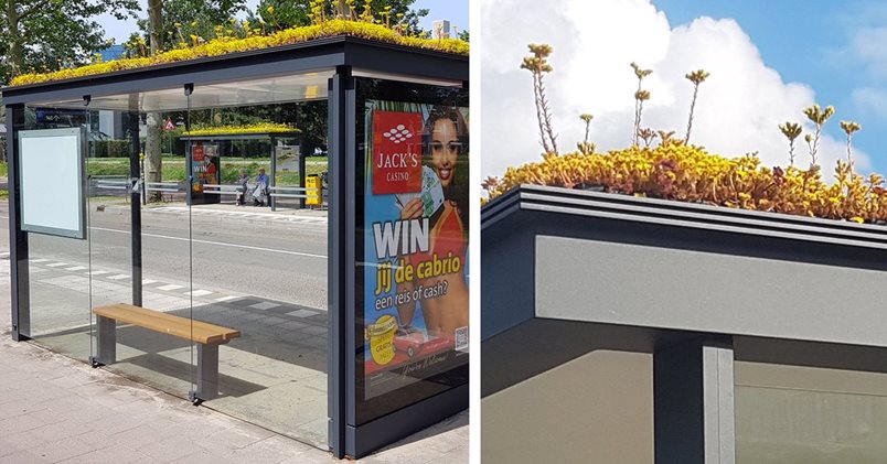 Утрехт е четвъртият по големина град в Холандия и е оборудвал своите автобусни спирки с покриви, покрити със зеленина, LED осветление и бамбукови пейки. Зелените покриви не само подпомагат биоразнообразието на града, като създават нов рай за различни видове пчели, но и съхраняват дъждовната вода и улавят финия прах. Зелените покриви се състоят основно от растения, които изискват малко поддръжка, но ще привлекат пчели и други насекоми със своите цветя.