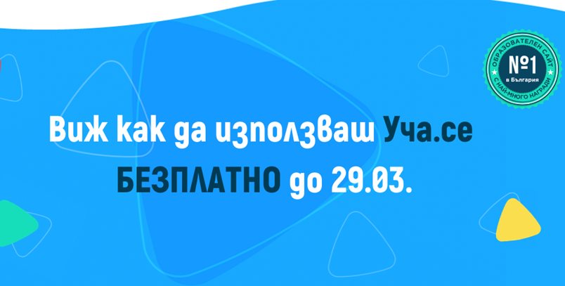 Мисията на Уча.се винаги е била да подкрепя българското образование. В този труден период е важно да бъдем единни и отговорни, както и да покажем, че можем да се справим с всяко предизвикателство, което съдбата поставя на пътя ни. Именно по този повод създателят на платформата Дарин Маджаров обяви, че достъпът до Уча.се ще бъде безплатен за всички хора до края на обявената ученическа ваканция в страната – 29.03.2020 г.