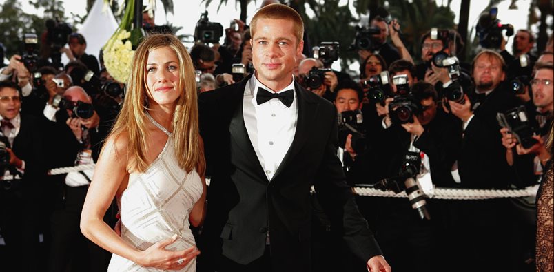 Една от най-любимите холивудски двойка някога се среща през 1998 г., за да си каже заветното "да" само две години по-късно. Единственият път, в който двамата са заедно на екран, е по време на участието на Пит в епизод от осмия сезон на "Приятели", излъчен през ноември 2001 г. Двамата слагат край на взаимоотношенията си в началото на 2005 г. и успяват да финализират развода си през октомври същата година.