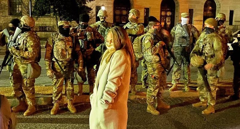 След като публикува немалък брой кадри около паметника на Вашингтон, заобиколена от въоръжени военнослужещи, с които се е срещнала, докато е търсила правилата локация за саундчек, Тейгън разкрива, че "очевидно всичко това трябваше да е тайна. Смъмриха ме, така че утре ще плача".