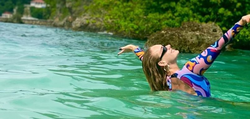 Точно това е и причината Адел да се завърна в социалната мрежа, споделяйки три нови кадъра. Първият е небрежен черно-бял портрет, на втората снимка тя плува в многоцветен цял бански и бляскави слънчеви очила, а за третата фотография позира във впечатляваща рокля Altuzarra, допълнена от чудесни обици.