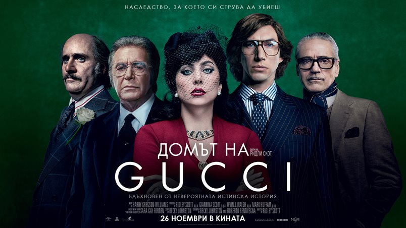 Воден от цяло съзвездие изключителни актьорски таланти, сред които носителите на множество награди и номинации – Лейди Гага, Адам Драйвър, Джаред Лето, Джеръми Айрънс и живата легенда Ал Пачино, „Домът на Gucci" ще ни потопи в забележителен, изкусителен свят на богатство, стил и власт, зад които обаче се крие грозната истина за най-първичните и низки човешки страсти и въжделения.