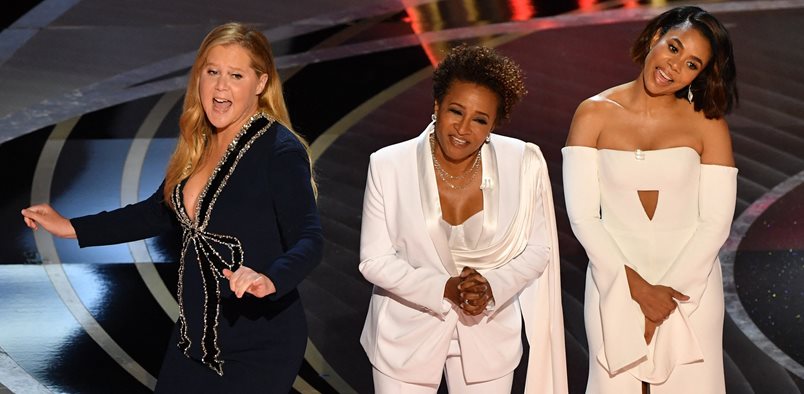 Измежду предварително включените в сценария шеги, които Ейми Шумър изчакваше неловко, за да може всички да чуят, Реджина Хол реши да извика няколко "случайни" сингъл мъже на сцената и да ги тества за Covid - Тимъти Шаламе, Симу Лиу и Брадли Купър. Минути след това тя реши да изпълни друг елемент от "протокола", буквално опипвайки Джейсън Момоа и Джош Бролин. Не че нещо, но ако продължаваме да вярваме в стандартите, нека са за всички.