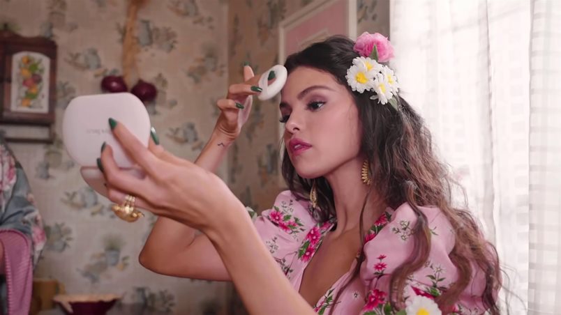 "Типичният блясък" на Селена може да бъде постигнат с най-новото предложение на Rare Beauty"", хайлайтъра Positive Light Silky Touch. Копринено гладката формула се плъзга по кожата за свеж завършек и не оставя черти, за което Гомес беше много категорична и горда.