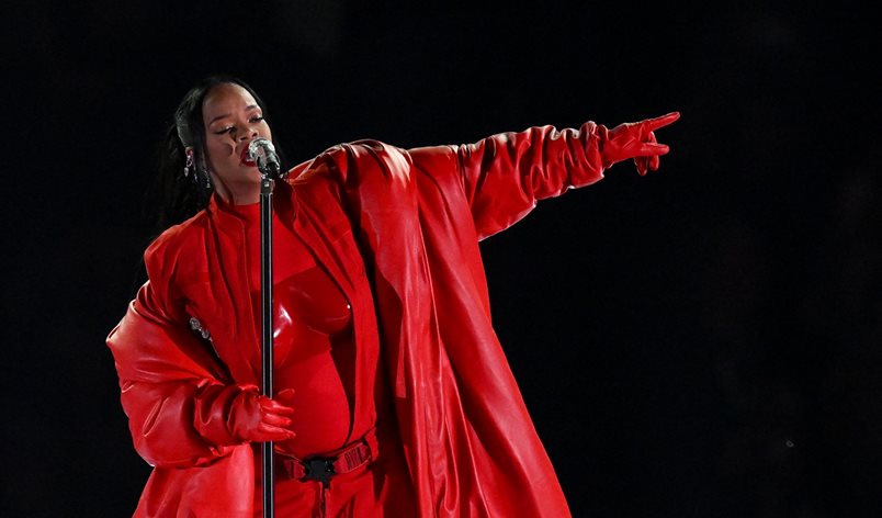 Риана се качи на сцената на Super Bowl LVII за Apple Music Halftime Show.
