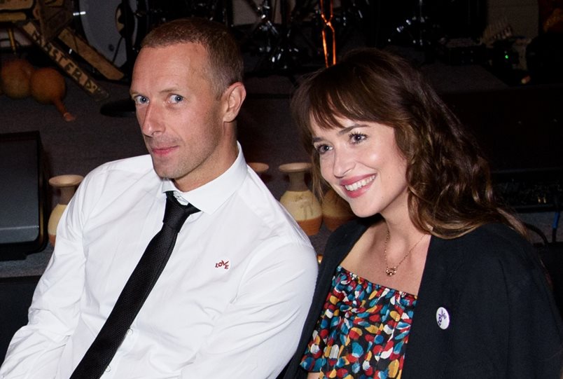 Парчето очевидно означава много за Дакота, която може да се види да се усмихва и да изпраща целувки на фронтмена на Coldplay.
