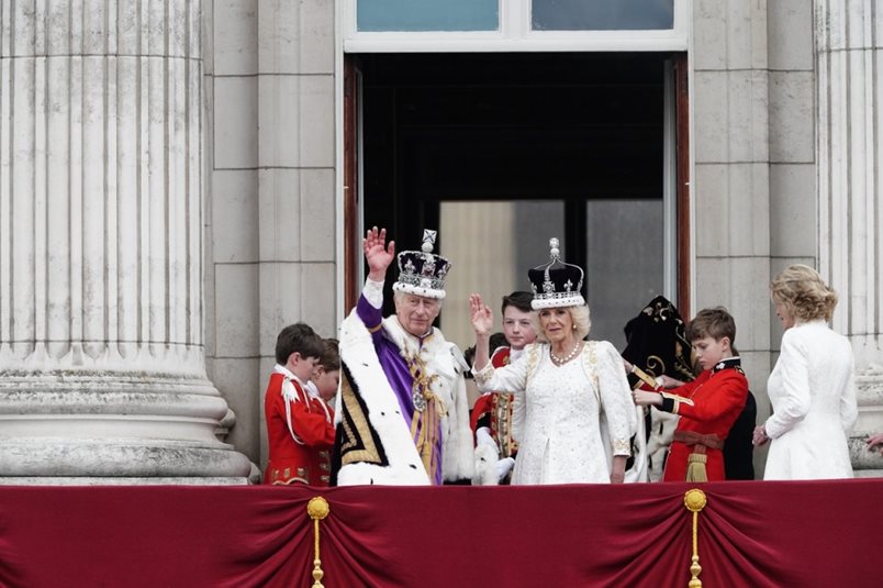 Британският крал Чарлз III и кралица Камила са избрали кадър от коронацията, чиято пищна церемония бе през май в Уестминистърското абатство. Тогава неговата втора съпруга - Камила, получи титлата кралица. На снимката той е с императорската държавна корона и кралска мантия, а тя носи короната на кралица Мери и рокля, дело на британския дизайнер Брус Олдфийлд. Фотографията, направена в тронната зала, е дело на Юго Бернар, допълват от Бъкингамския дворец.