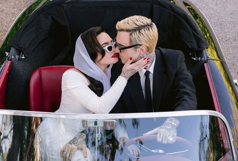 Деми Ловато се омъжи за дългогодишния си партньор Джордан Лутс в интимна церемония. Поп дивата бе избрала изящна рокля от легендарната модна къща Vivienne Westwood.