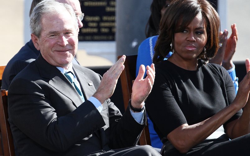 Да, същият този републиканец Джордж Буш, който започна войната в Ирак и същата тази Мишел Обама, чийто съпруг е два пъти избран демократически президент, очевидно имат достатъчно допирни точки, за да нарекат себе си приятели. Вероятно първият път, когато пресата забеляза тяхната специална връзка е през 2015 г. по време на честването на 50-годишнината от „Кървавата неделя" двамата са видяни да разговарят оживено и затвърждават добрите впечатления година по-късно, когато на официално събитие Мишел без всякакви притеснения прегръща Буш пред заобикалящите ги фотографи.