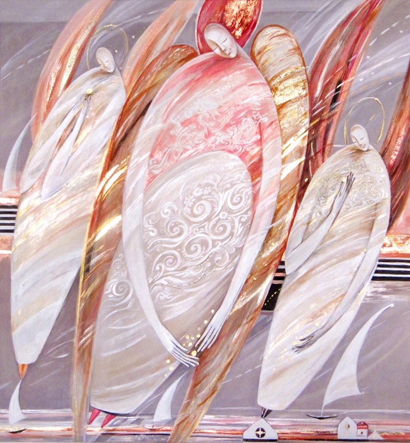 Живописта на Даниела Хаджиева води диалог между иконографията и сецесионния стил. В нейните творби личи изключително усещане за лекота и динамика. "Ангелските ѝ образи са цялостни и мълчаливи, асиметрични на ущърбеното ни битие, на нашите разриви и загуби. Те могат да отворят пролуки в съзнанието ни – да си спомним", споделя кураторката на изложбата Валентина Маринова.