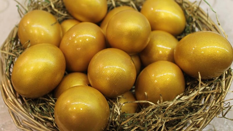 Златни великденски яйца? Защо не? Доскоро и аз не знаех, че те могат да се направят лесно и да засияят на празничната трапеза. Докато не попаднах на този видеоклип и не порових малко в интернет, за да открия, че в България вече се предлага същата златна боя за яйца, която е показана и във видеото. Кутийката съдържа три цвята – сребърен, златен и червен металик. Най-красиви обаче ми се струват златните яйца, затова може би ще направя само от тях. На опаковката пише, че един цвят е достатъчен за боядисването на 30 яйца. Но дори това да не е съвсем така и да се наложи да покрием едно яйце с два пласта боя, пак си заслужава да опитаме.