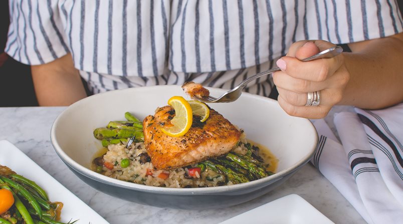 НЕОБХОДИМИ ПРОДУКТИ: Филе от сьомга (в зависимост от броя порции, които приготвяте) / 2 с.л. мед / 2 с.л. майонеза / 1 с.л. горчица / 1/4 ч.л. сол / 1/4 ч.л. черен пипер / 1/2 ч.л. сушени листа от мащерка / сокът на един лимон