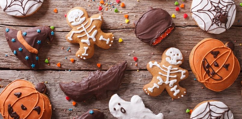 3. Разточете тестото, изрежете го със страховитите форми и печете в предварително загрята на 170 градуса фурна за около 12-13 минути.