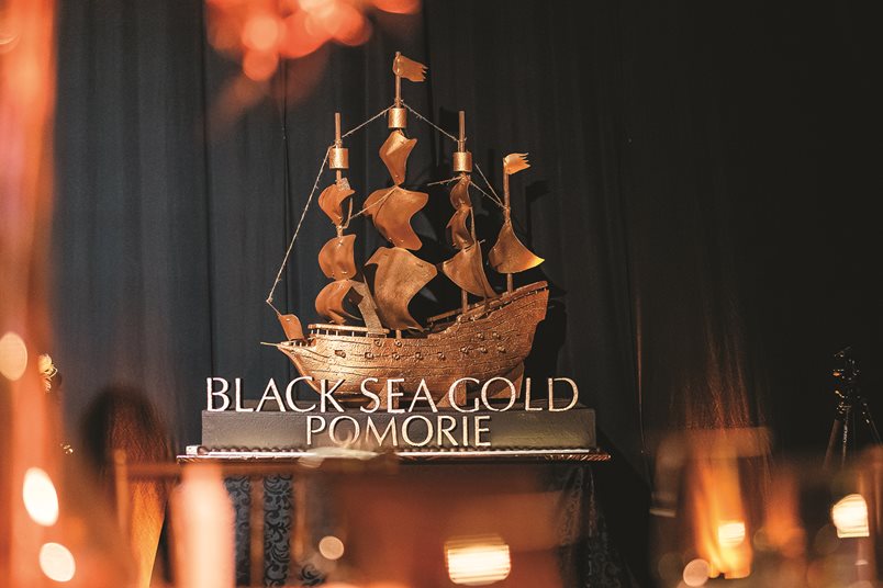 Като на всеки рожден ден и на този имаше огромна торта - Златна шоколадова скулптура на кораб, специално изработена за Black Sea Gold от шеф Ради Стамболов. За да я разрежат, на сцената излязоха собствениците на Black Sea Gold Петя Славова, Жени Славова и Ивайло Василев и изпълнителните директори на винарната.