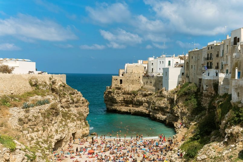 В един от дните ние решихме да се отправим към Полиняно а Маре, което се оказа само на половин час с влак. Билети може да се вземат директно от машините на Централната гара и струват 2,80 евро в посока. И ако Бари не е от най-instagrammable местата, то не може да кажем същото за известния плаж Lama Monachile, който беше и нашата цел. Малък, каменист и сгушен между скалите, до него се стига през каменисто стълбище зад моста Ponte Borbonico. Гледката тук наистина е изключително живописна, независимо дали ще го снимате отгоре, или ще се престрашите да се разположите сред тълпите от хора на самия плаж.