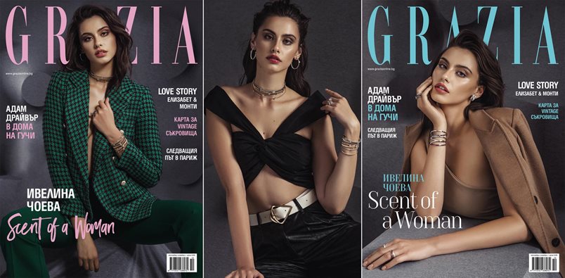 Докато се чудихме кой от вариантите за корица да изберем, в крайна сметка се спряхме и на двата. От тях грее ослепителната Ивелина Чоева, която спечели статуетката в категория "Общество" на тазгодишната церемония "Жена на годината" и в специално интервю за GRAZIA коментира ароматите, пътуванията, успеха и моментите с любимия човек.