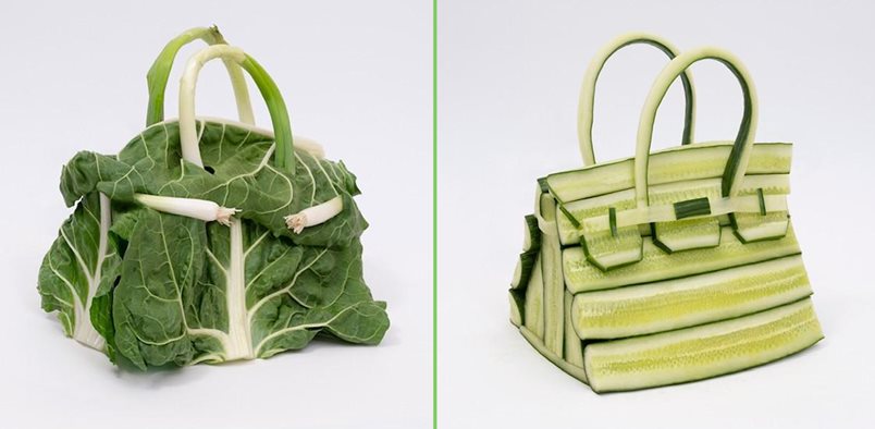 Разбирайте го така, без никакви увъртания: чанти, изработени от аспержи, зеле и краставици може да изглеждат странно, но определено провокират въображението.
