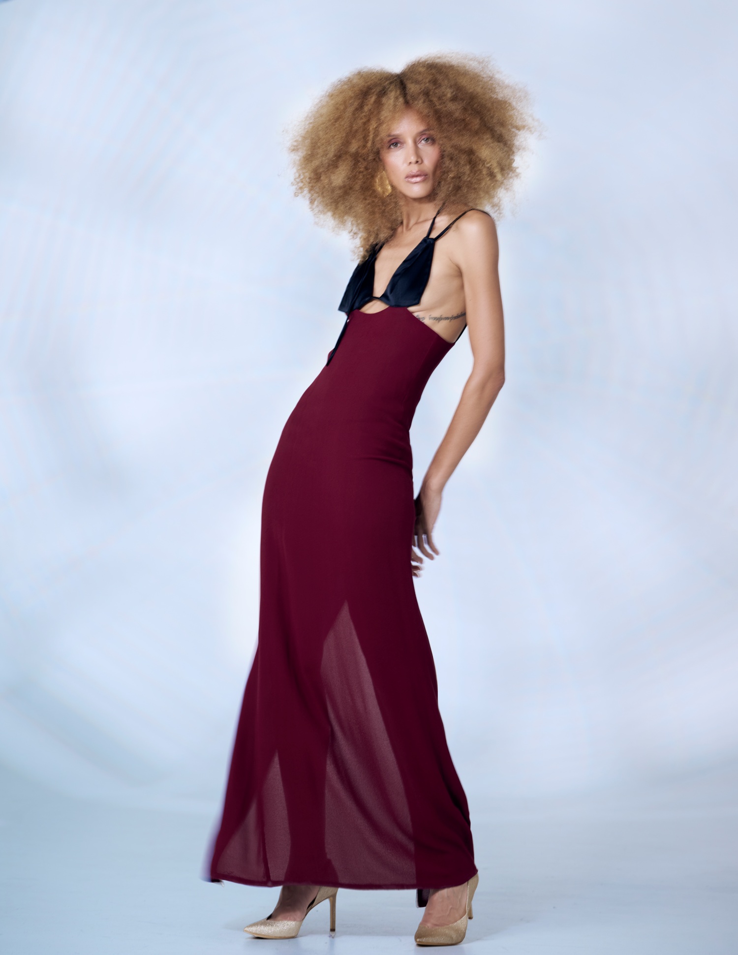Stylist María José Salazar orchestrates a masterclass in textural tension, curating a wardrobe that balances architectural severity with fluid sensuality. The collection is a high-wire act of design, featuring the sculptural precision of Alaïa and the daring, skin-baring cuts of Monot, which interact seamlessly with the avant-garde spirit of Coperni. There is a palpable dialogue between the heavy and the ethereal; the grounded, tactile luxury of Andrea Landa’s leatherwork provides a stark, beautiful contrast to the delicate, sheer overlays and the intellectual romanticism found in pieces by Dries Van Noten and Faride.