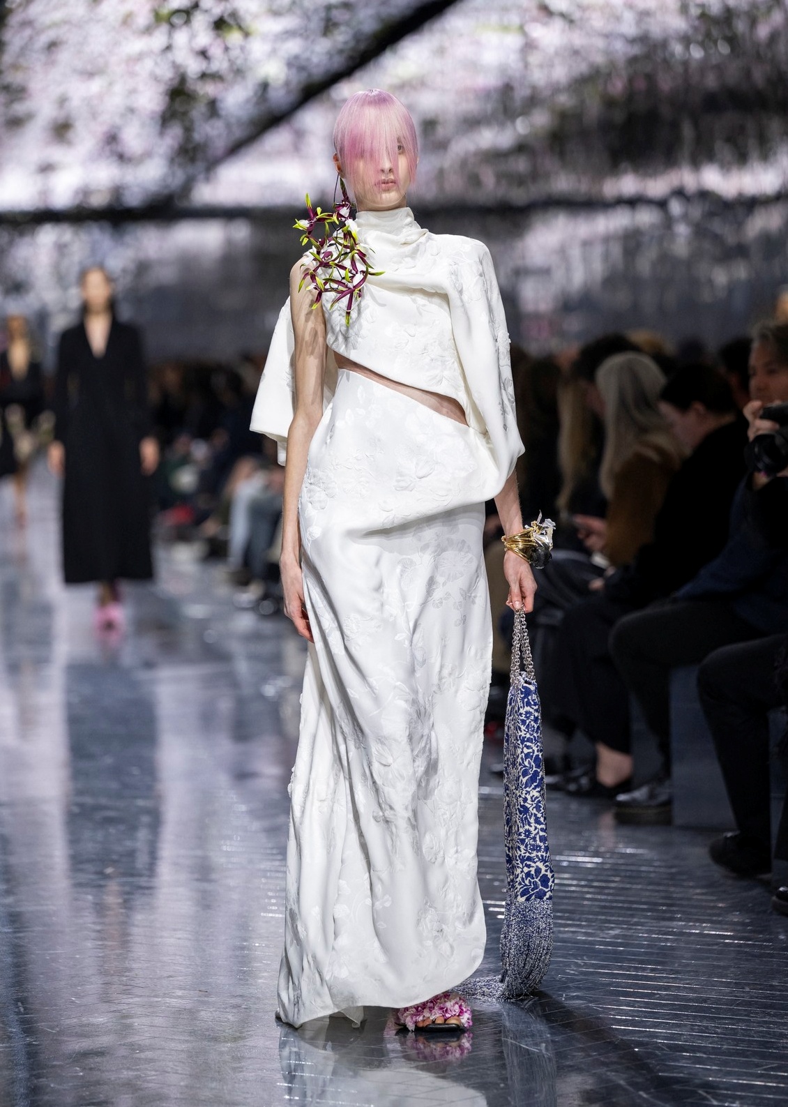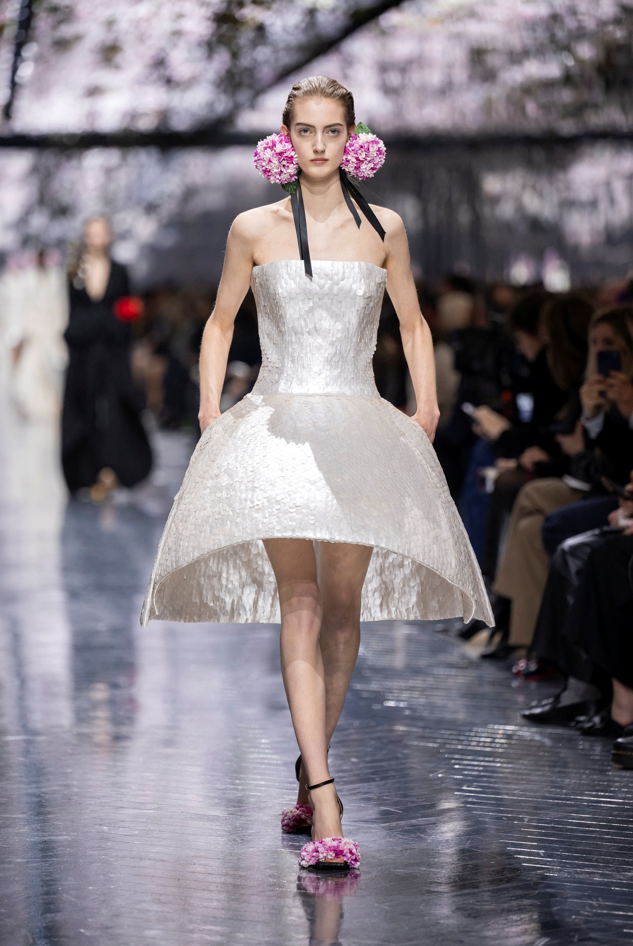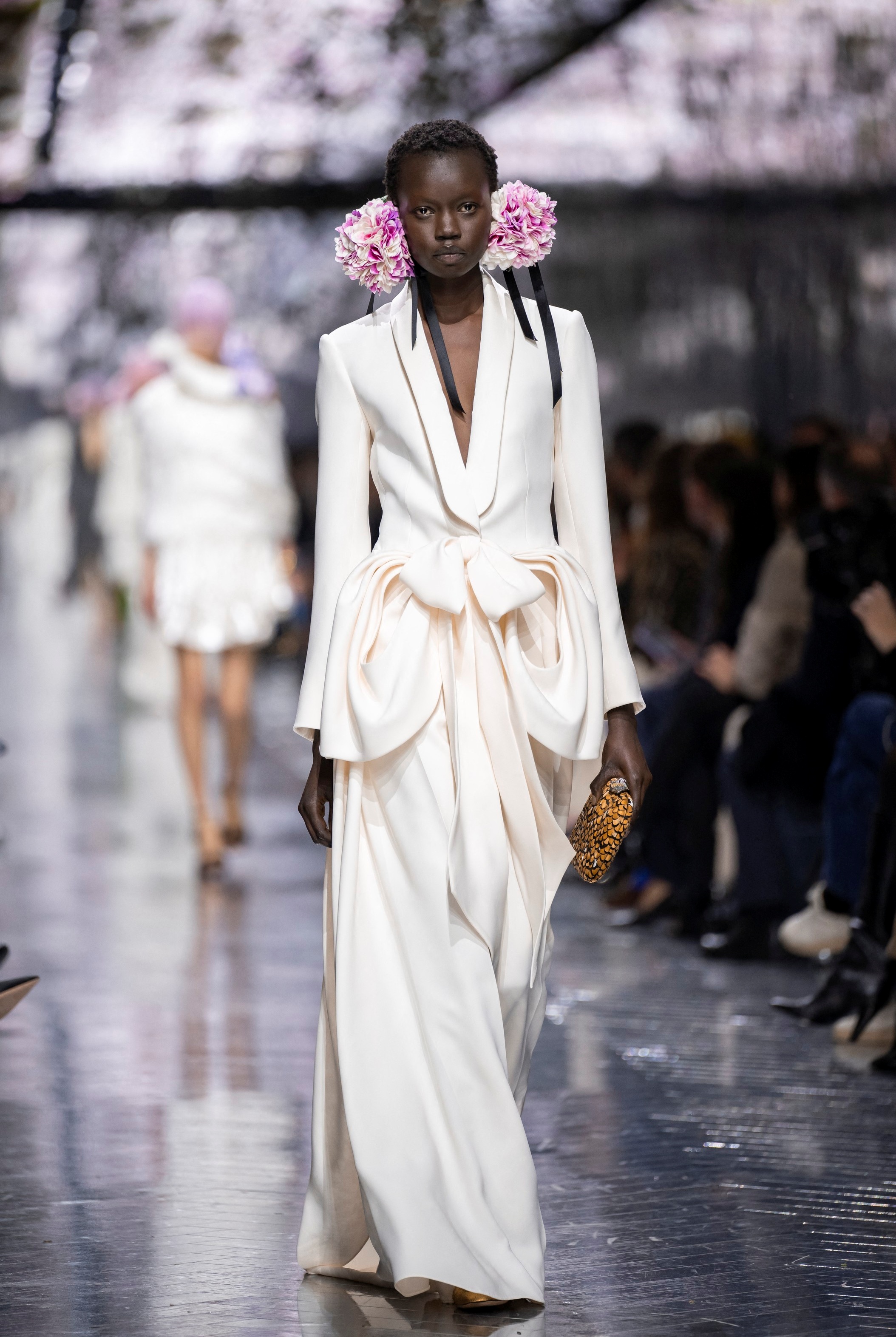 Андерсън умело вплете и наследството на Dior, без да изпада в буквализъм. Минималистични интерпретации на Bar сакото, прецизно скроени палта с подчертана талия и елегантно драпирани вечерни рокли напомниха за епохите на Раф Симънс и Джон Галиано, но в един нов прочит.