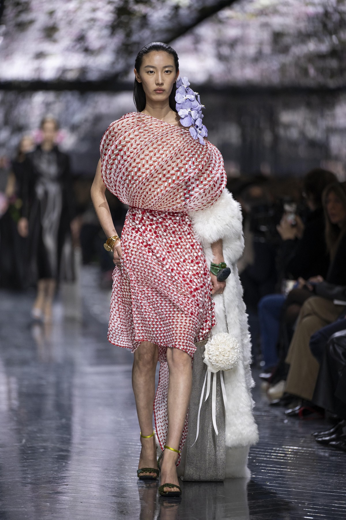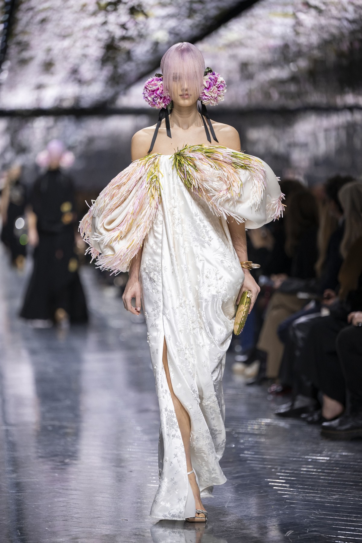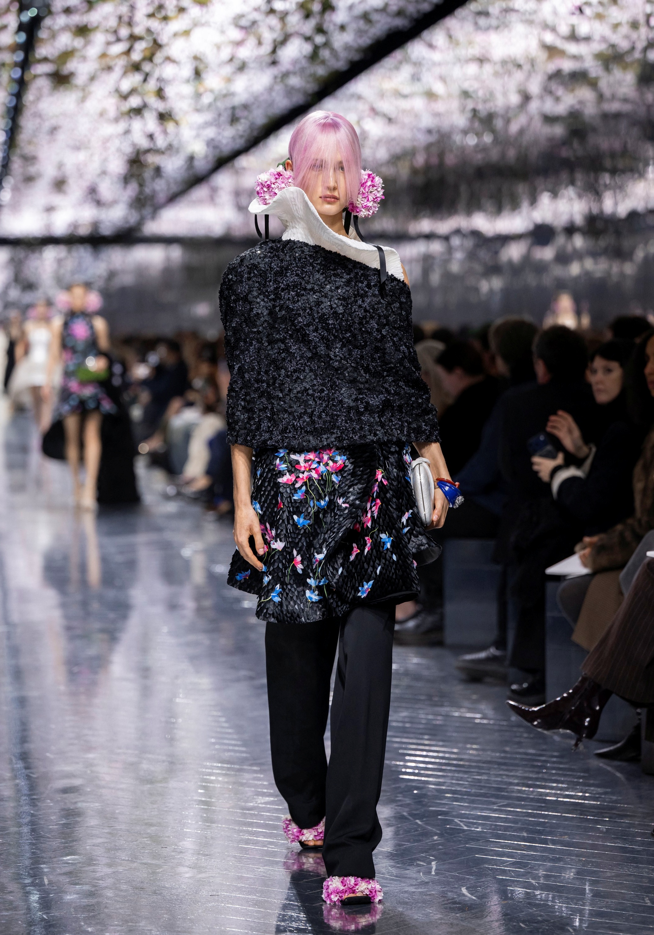 Декорацията и текстурите заеха ключово място в колекцията. Фини тъкани, покрити с хиляди миниатюрни текстилни венчелистчета, пера и структури, наподобяващи пеперудени крила. Тенденцията към ръчна изработка подчерта идеята за couture.