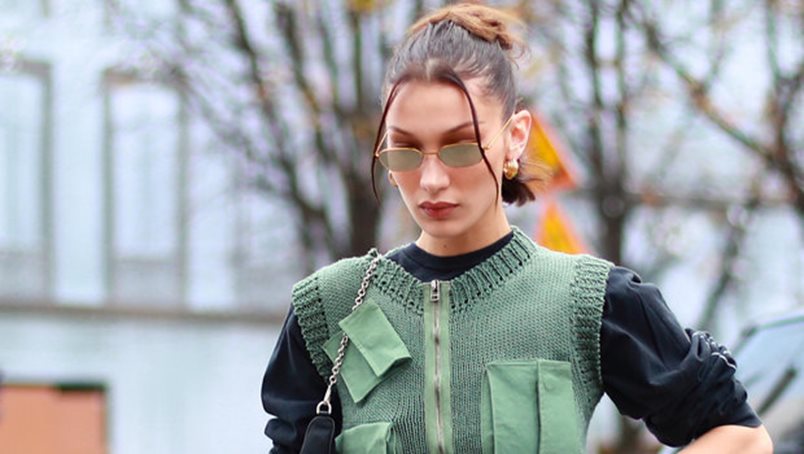 Бела Хадид обича утилитарния стил и необичайните детайли в гардероба. Този сезон е особено любим за нея, защото е доминиран от карго панталони, неутрална палитра, скулптурни силуети и иновативни решения. Образът, в който манекенката се появи по улиците на Париж, отговаря на всички тези модни аспекти. Тя построи визия от черен суитшърт и подходящи към него карго панталони в комплект с плетена жилетка в зелено, без ръкави, с цип и във военен стил. Бела компенсира тъмните цветове и обема с бели кецове. Въпреки наличието на голям брой джобове, като истинска модна вдъхновителка, Хадид не можа да мине и без миниатюрна чанта на верига.