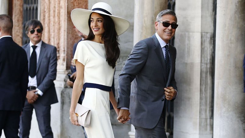 Много харесваме стила на Амал и сме го казвали неведнъж. Тя е доказателството, че дори да не носиш толкова бляскави и отличаващи те от тълпата елементи във визията си, все пак можеш да изглеждаш неотразимо. Съпругата на Джордж Клуни носи истинска булчинска рокля за големия ден, който стотици медии се борят да отразят, но за същинската церемония се спира на изчистен бял гащеризон и шапка с широка периферия. Одобряваме!