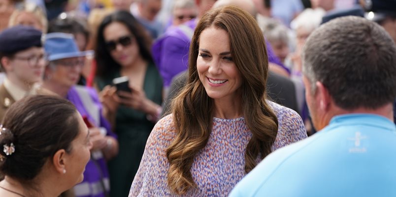 Пристигайки в Кеймбриджшър, където двамата с принц Уилям представиха първия си официален съвместен портрет, херцогинята на Кеймбридж привлече вниманието с флорална рокля LK Bennett.