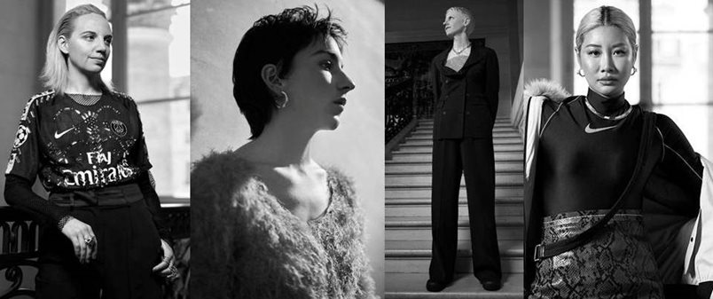 „Харесва ми факта, че това са удобни дрехи, които едновременно с това изглеждат красиви”, казва Марин Сер - носителка на наградата LVMH за 2017 година. А Ерин Маджи - основателка на марката улично облекло за момичета MadeMe - признава, че това е нейният „първи опит с нещо толкова близко до формата на професионални спортисти”. За разлика от Ерин, Юн Ан не вече е създавала кецове и сребърни колиета за Nike. За Кристел Коше това е второто сътрудничество: яростната фенка на футбола пусна колекция с Nike тази година. „Искам момичетата да се чувстват уверени в тези дрехи”, казва тя за новото сътрудничество. „Спортът и модата имат едно общо нещо - те дават на хората вяра в собствените им сили.”