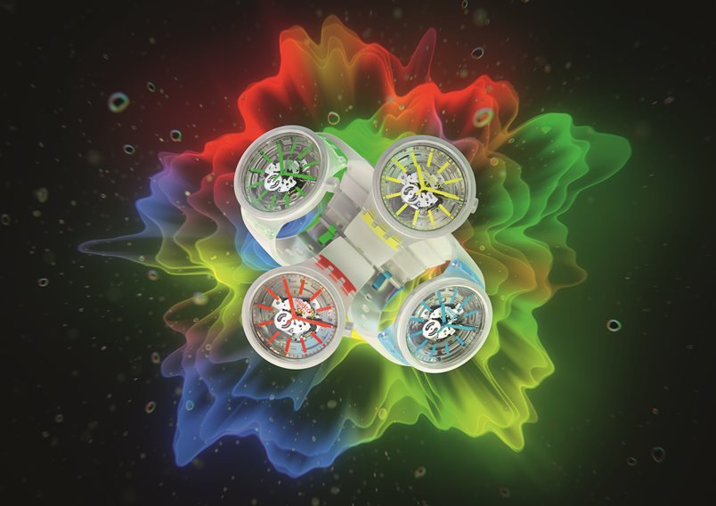 Полупрозрачни каишки, достъп до сърцето на часовника, в което тупти високотехнологично ядро и ярки цветове, които добавят енергия в лятото.