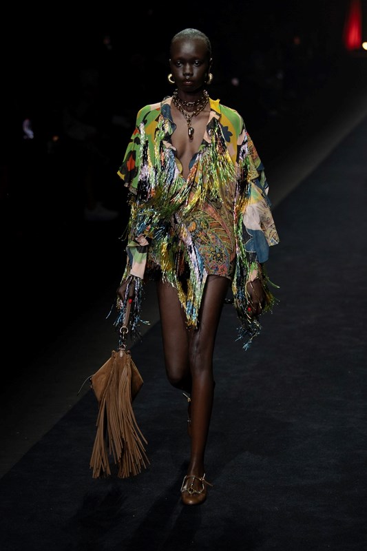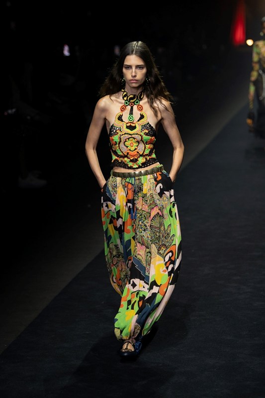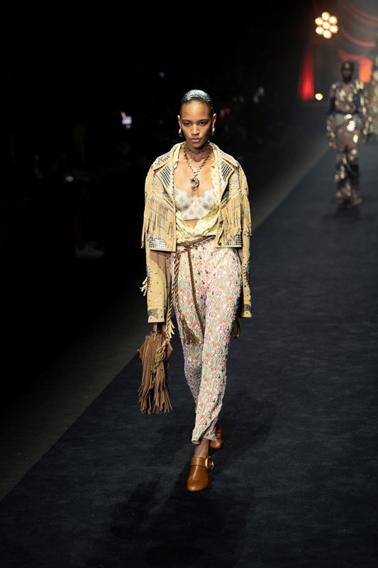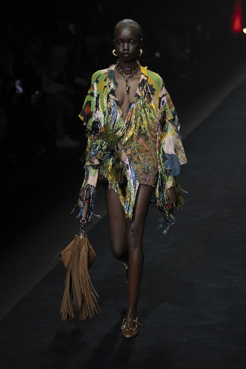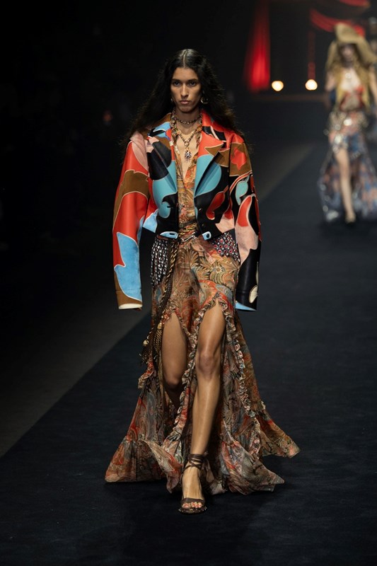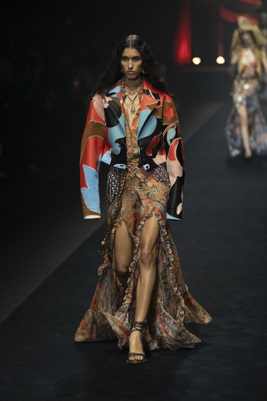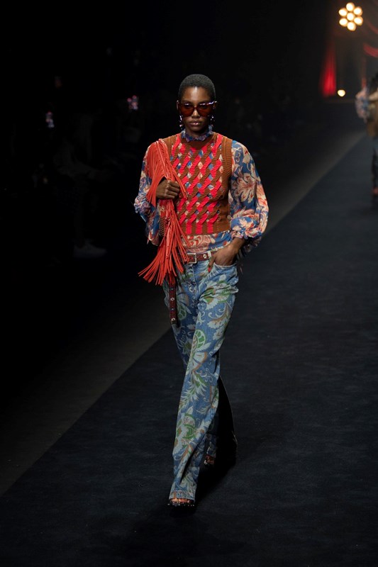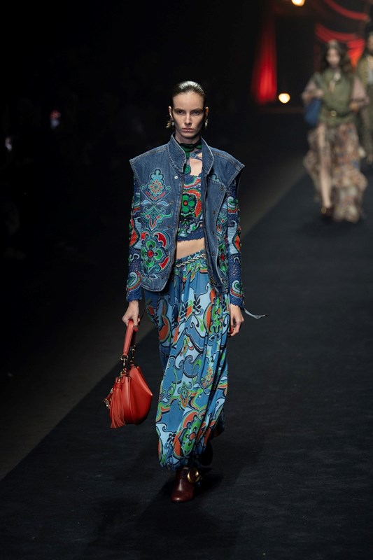 Ключови елементи от колекцията на Etro включват: преосмислени paisley щампи, богати текстури като жакард, деним и кадифе, както и аксесоари с фолклорни мотиви – шапки, шалове, бижута. Цветовете варираха от слънчево жълто до наситено бордо и романтични пастели.