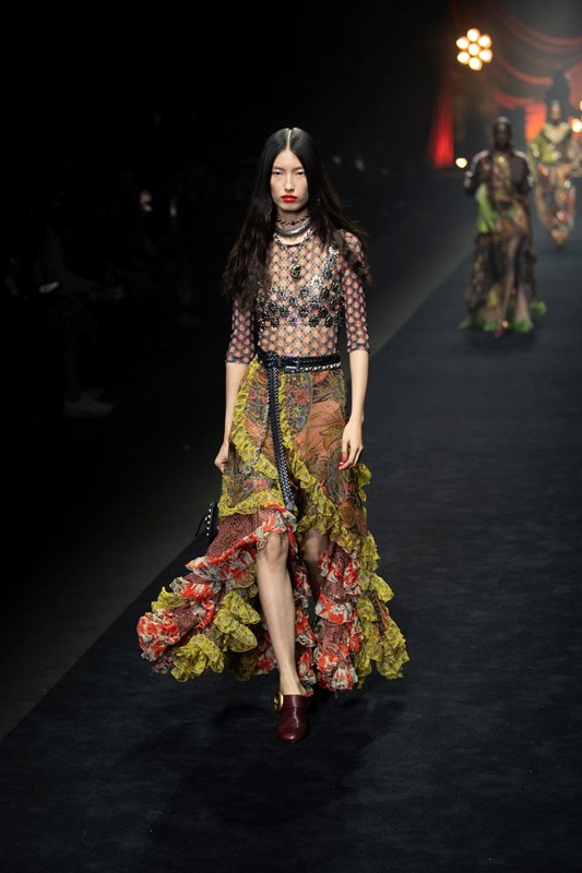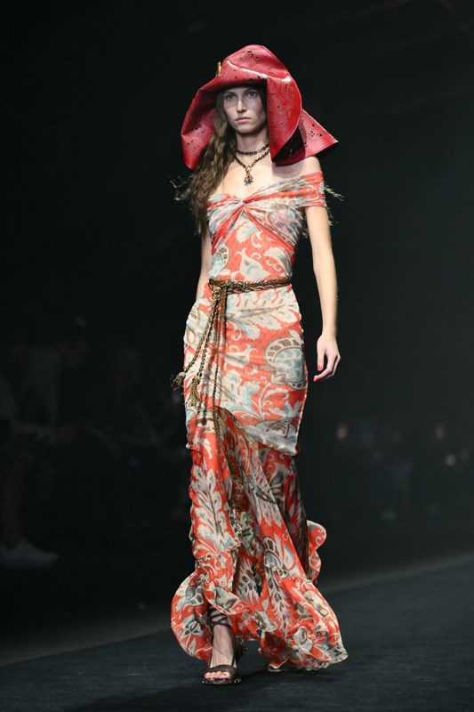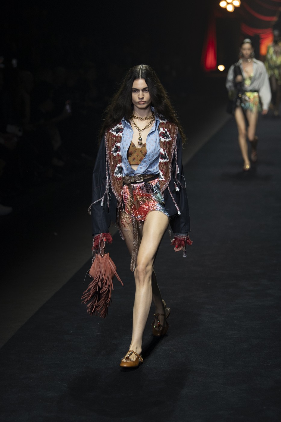 Креативният директор Марко де Винченцо създаде истински спектакъл, с музика на живо и сценография, вдъхновена от различни ритуали и пътувания. Дрехите се носеха в ритъма на барабани – с потрепването на ресни, волани, прозрачни материи и етно бродерии.