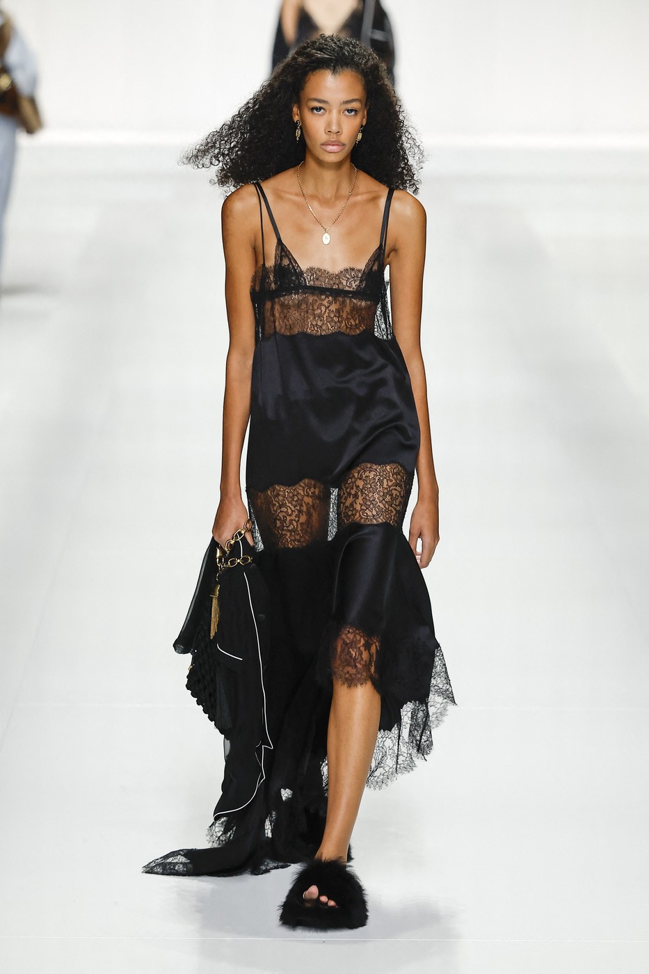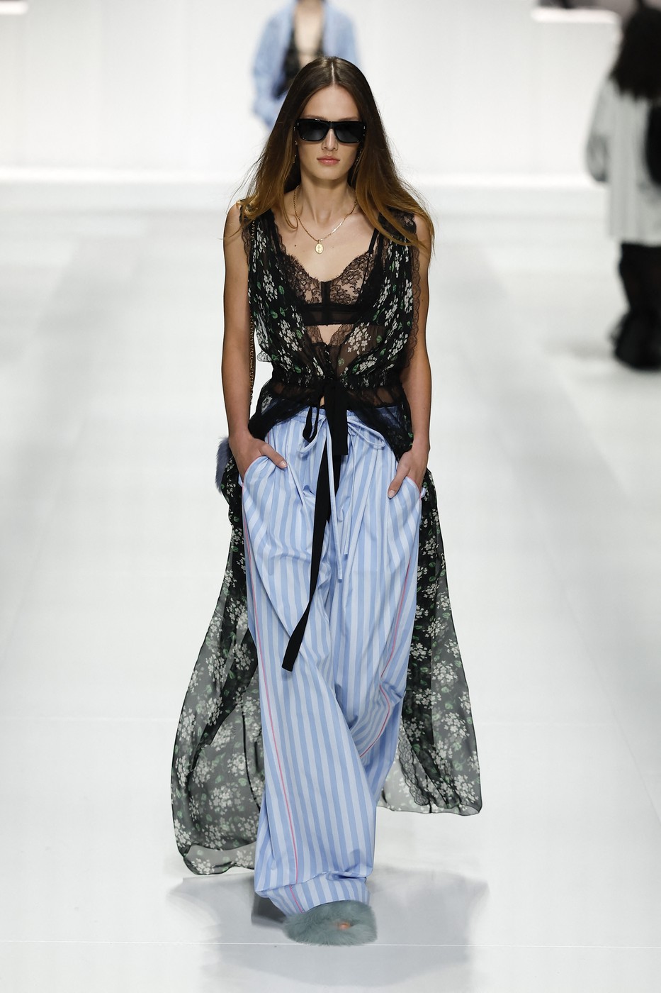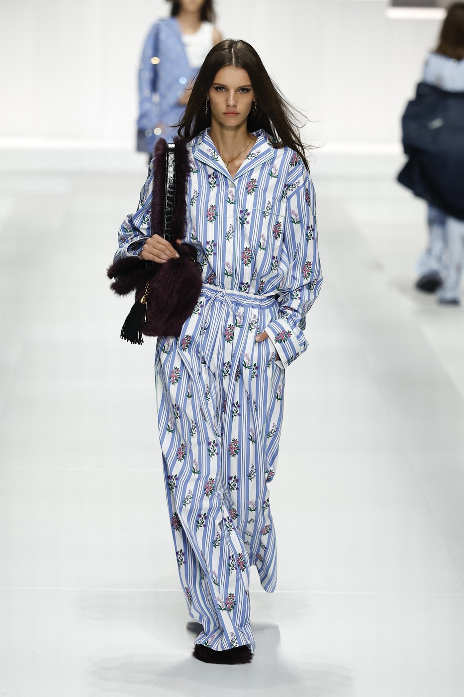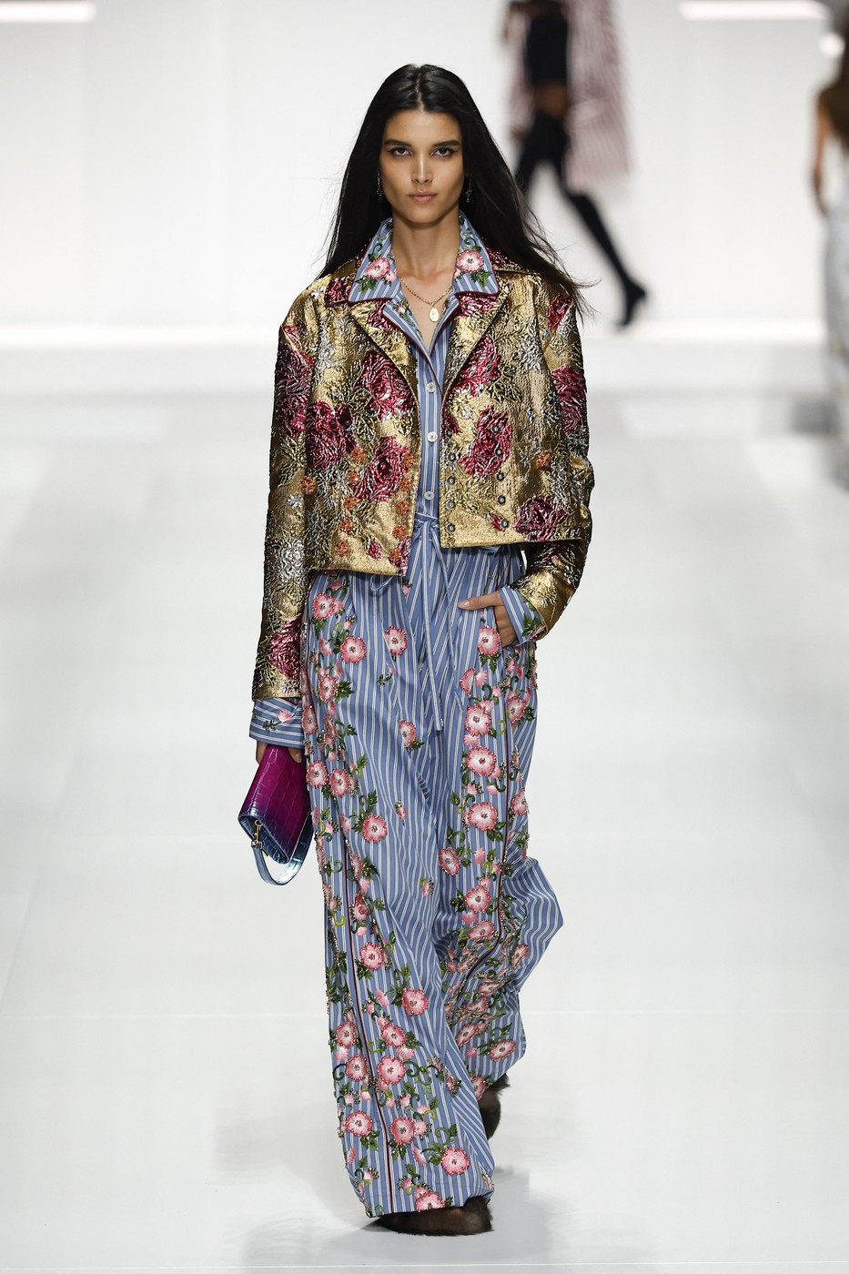 Колекцията предлага дрехи, които изглеждат сякаш току-що извадени от куфар – смачкани, меки, естествени, но съчетани със забележителна елегантност. Свободните силуети, сатенените комплекти, широките ризи и бермудите от фина кожа съжителстват с класически двуредни сака, изразени рамене и вечерни елементи като блясък и бродерии.