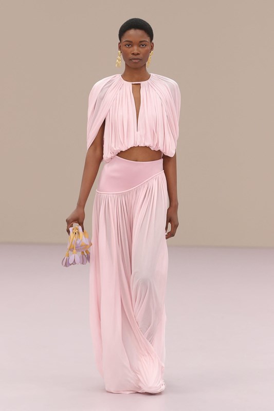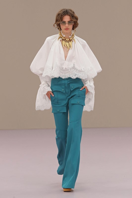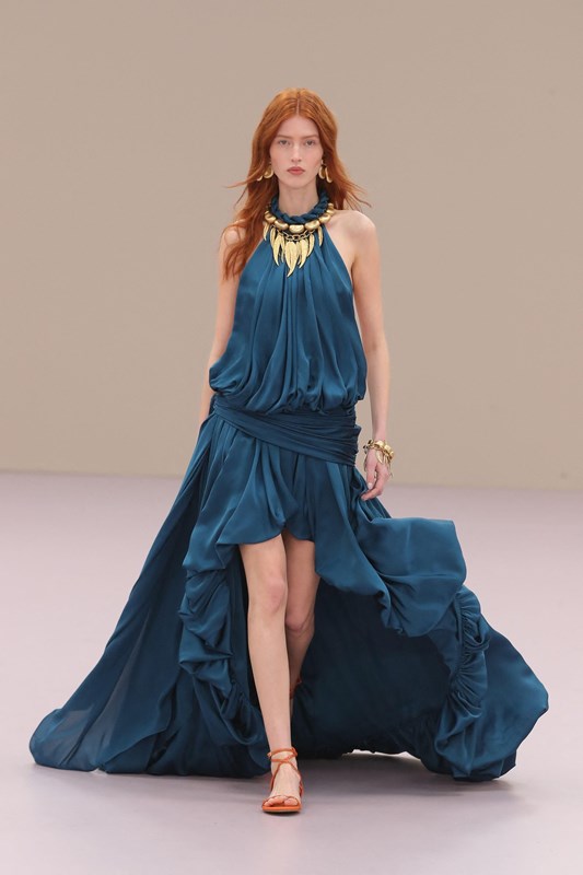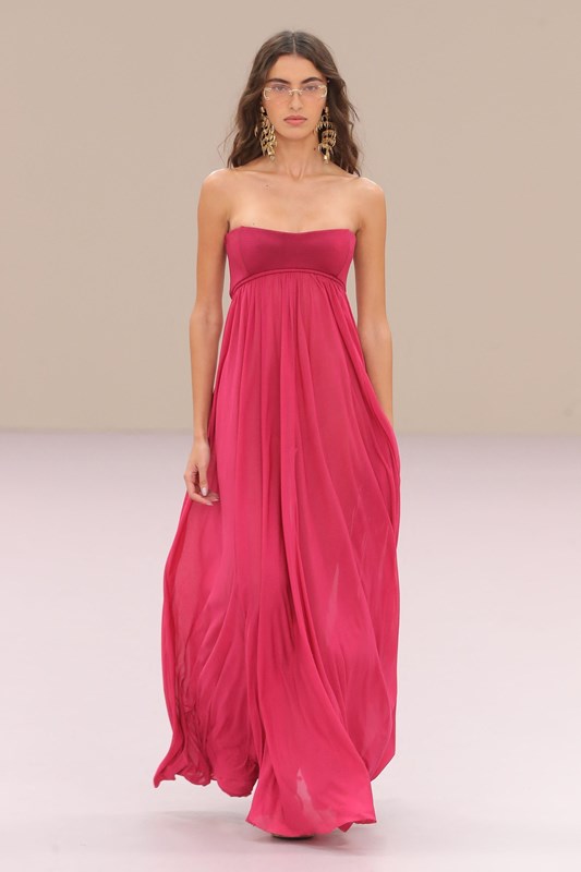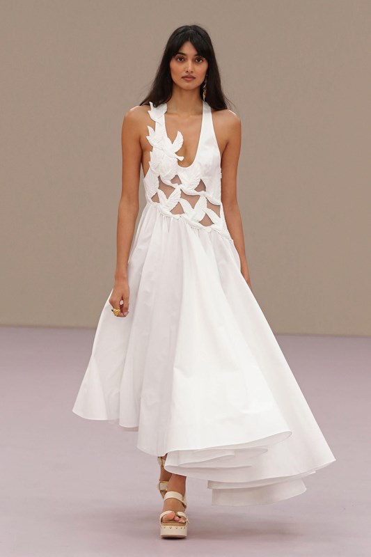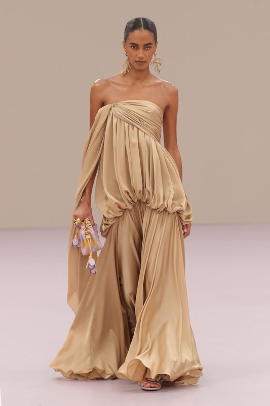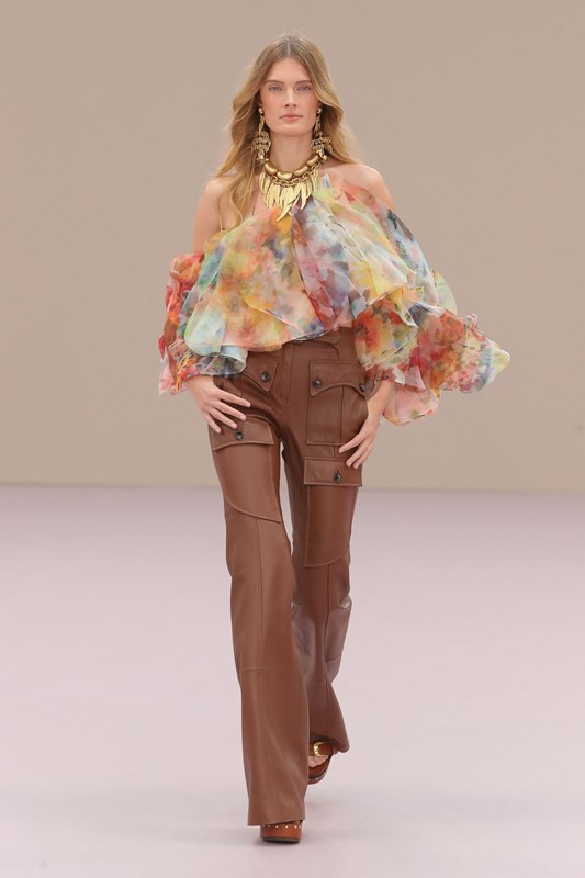 На подиума на Седмица на модата в Париж дизайнерският тандем от Австралия заложи на ефирни материи, нежни цветове и бохемски силуети. Тенденциите, които се откроиха, ясно очертават посоката за новия сезон: романтиката се завръща, но с модерен прочит. Леките органзи и копринени тъкани създават движение при всяка крачка на модела, а воланите, плисетата и изобилието от ръчно изработени детайли засилват усещането за лукс, който е едновременно артистичен и достъпен.